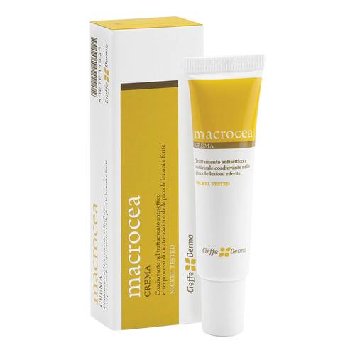 macrocea CREMA Funzione Il prodotto è un dispositivo medico studiato per prevenire e combattere l'insorgenza di infezioni, in caso di piccole ferite e/o lesioni cutanee. Inoltre, l’uso corretto della crema, crea le condizioni ottimali per una rapida e naturale cicatrizzazione della cute, prevenendo così la formazione di cicatrici cheloidee. Il prodotto, grazie ai suoi componenti, è indicato nel trattamento antisettico e cicatrizzante delle piccole lesioni, anche in seguito a piccoli interventi dermatologici (asportazione di verruche o molluschi contagiosi, piccoli incisioni, infiltrazioni, applicazione di filler). Ingredienti Oli...